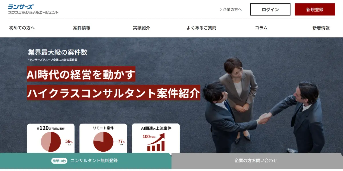 - 上場企業のランサーズが運営するフリーコンサル向けの案件仲介サービス